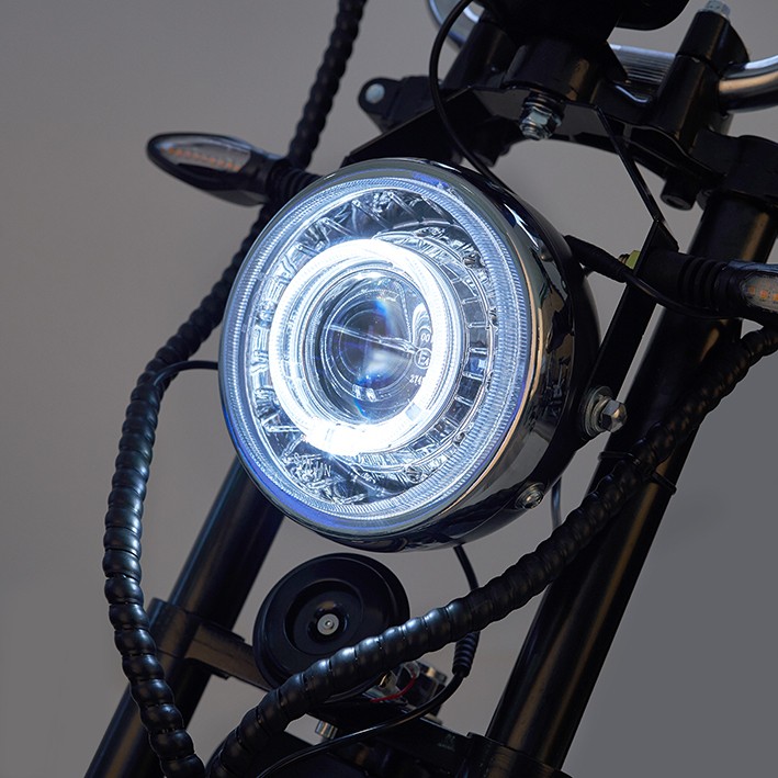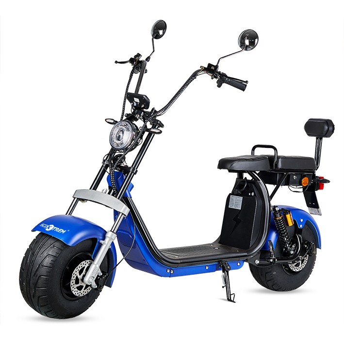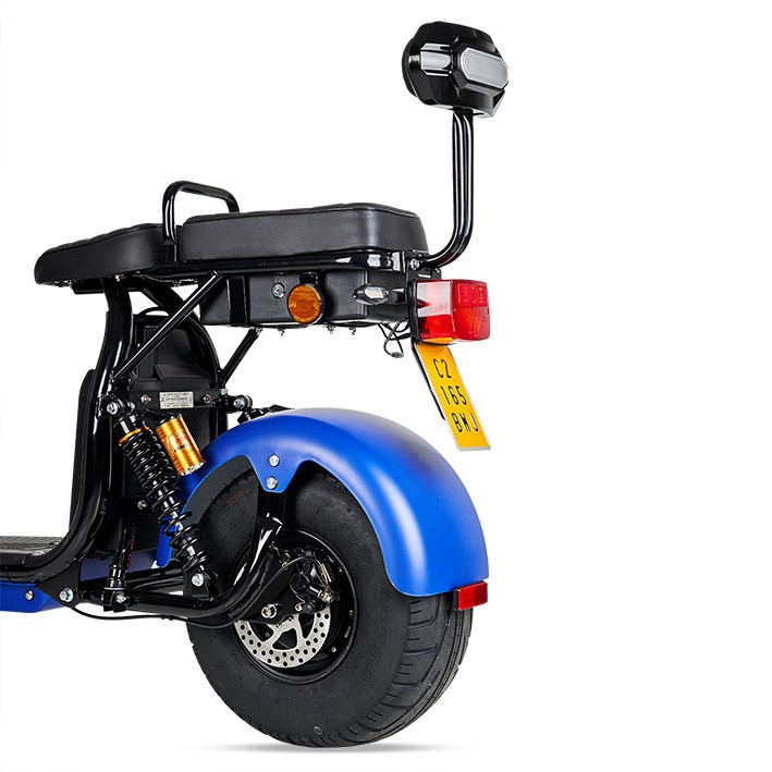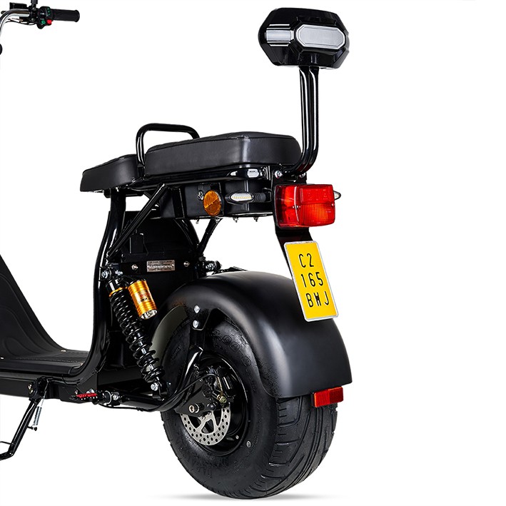 Si buscas una moto eléctrica matriculable Citycoco con máxima velocidad y seguridad, la moto eléctrica matriculable 1200W Maverick II Citycoco te va a encantar. Ofrece las mismas prestaciones que una moto con combustible pero siendo totalmente ecológica. También está la opción de comprar una segunda batería para tener el doble de autonomía.