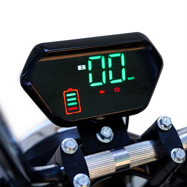 Cuenta con pantalla LCD, indicadores de batería, luz frontal y luz de freno, intermitentes, 2 amortiguadores traseros y frenos de disco delanteros y traseros.