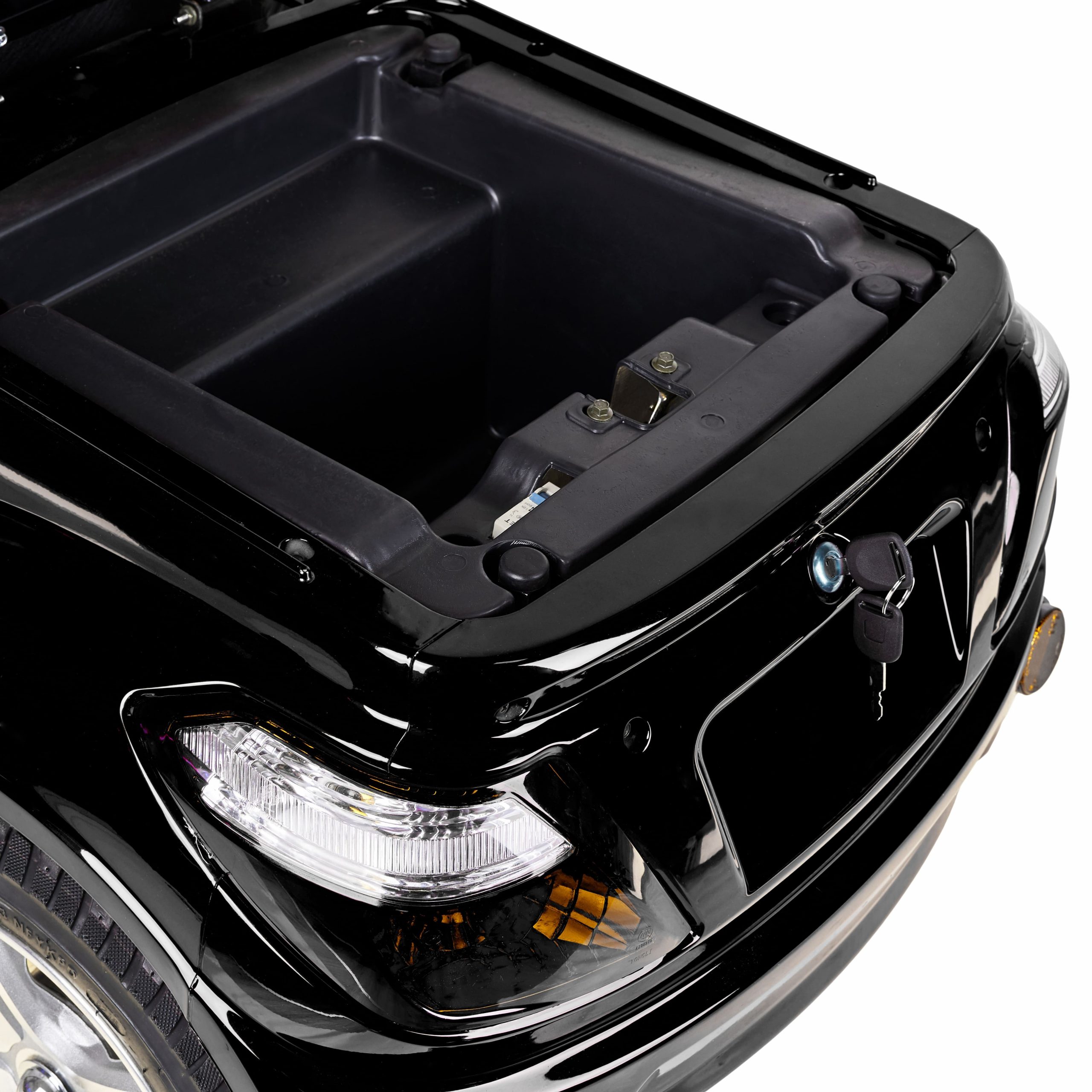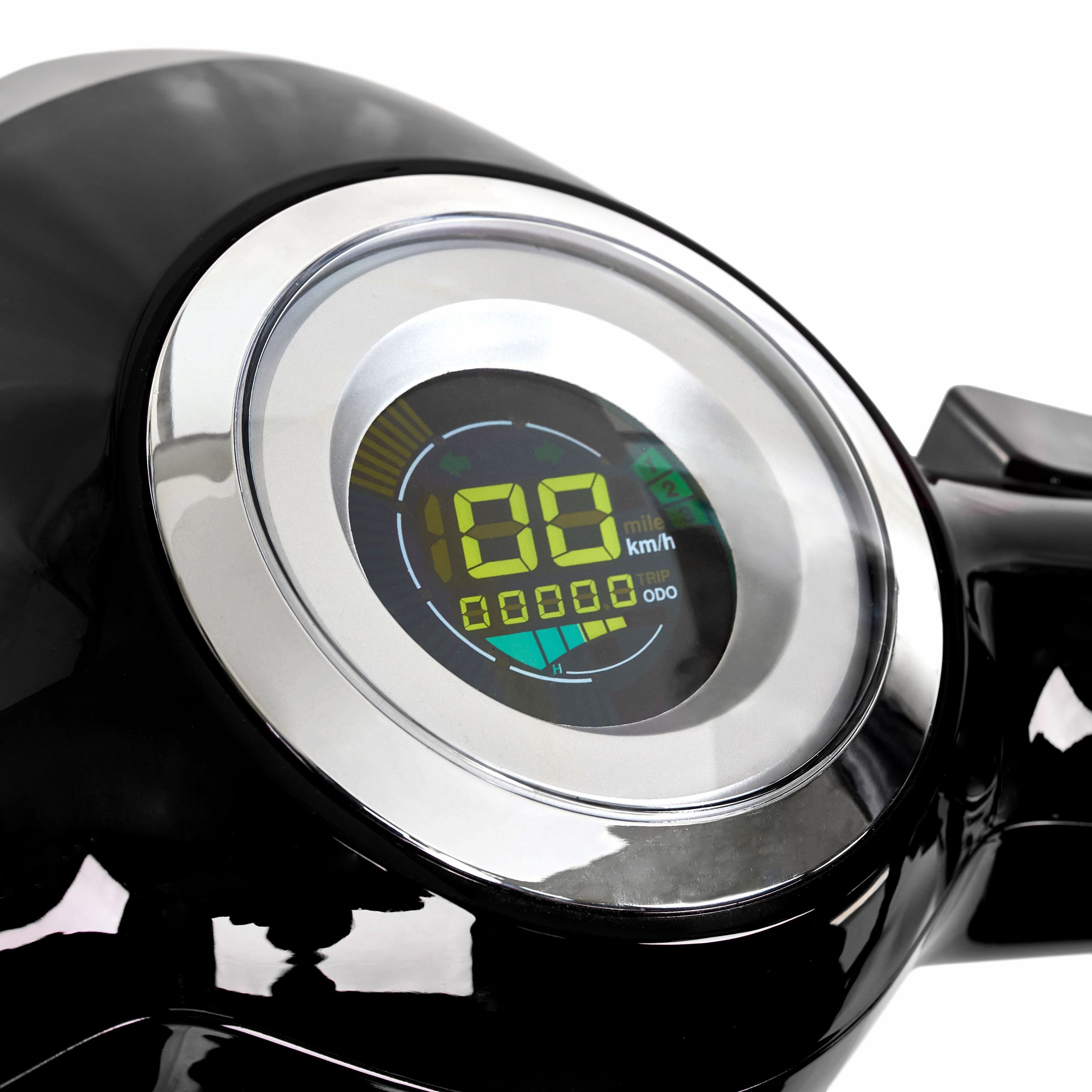 Tiene un motor de 650W y puedes elegir entre batería de Litio o Plomo de 60V 20Ah. Además puede soportar una peso máximo de 140 Kg.